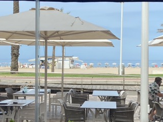 Al final nos sentaron sobre las 15.20 en una mesa para cuatro. Nos sentaron uno al lado del otro mirando al mar. La verdad es que estaba muy bien. Incluso pedimos que nos cerrasen la cristalera porque había mucha corriente y sin problema.