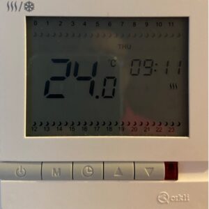 Las siguientes instrucciones pretenden indicar cómo se han de programar los termostatos de la calefacción y la refrigeración. ENCENDIDO/APAGADO: Pulsar el botón de On/Off (encendido/apagado) para encender el termostato. Vuelva a pulsar el botón para apagar el termostato. Vuelva a apagar el botón para apagar el termostato. Cuando esté apagado,...